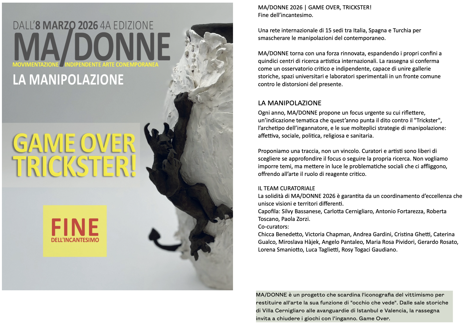 EL NIDO has been selected as a key "Artistic Outpost" in a new global network dedicated to independent research, environmental art, and female leadership. This collaboration, centered around the 4th edition of the MA/DONNE project, aims to bridge the gap between isolated creative sanctuaries and the global art scene.
