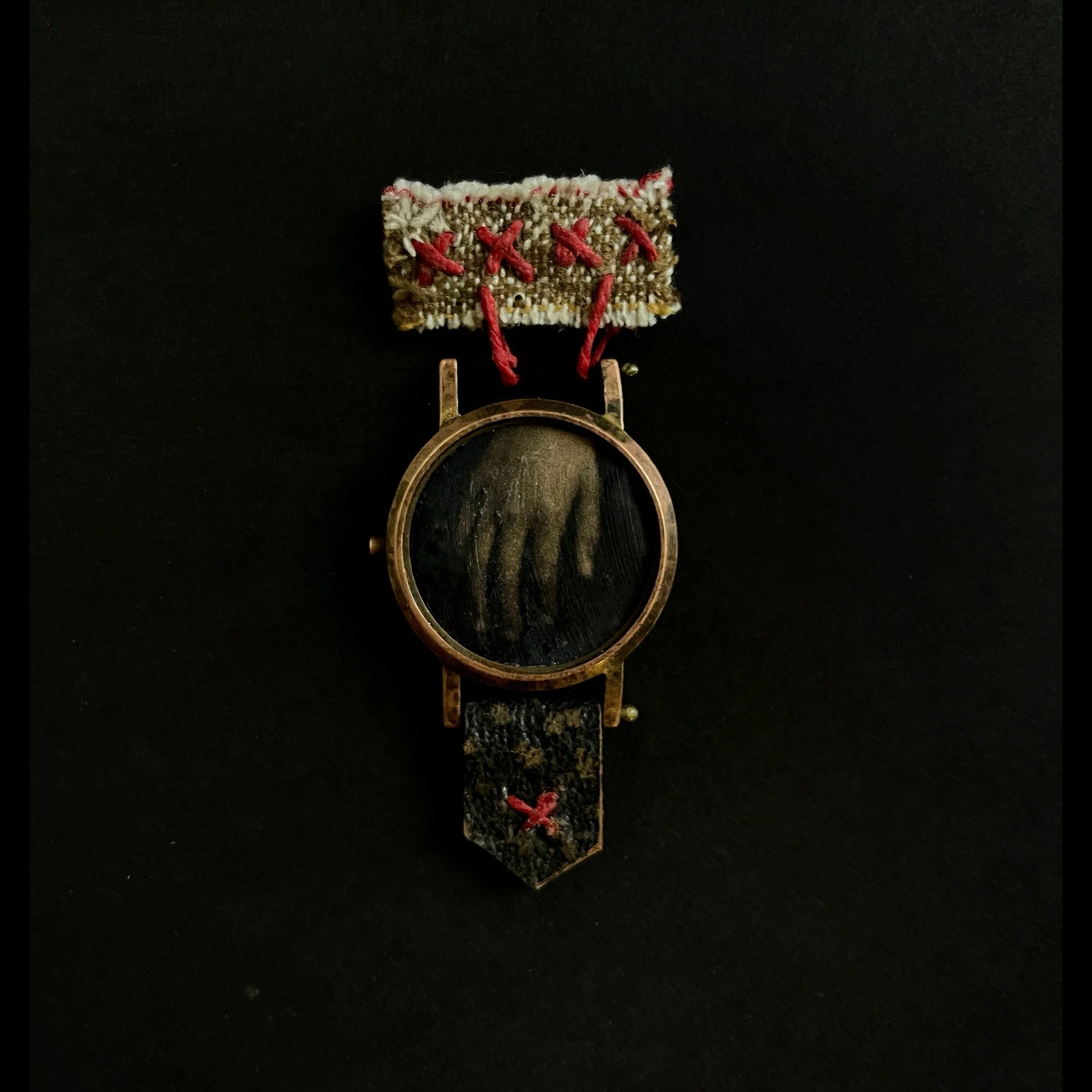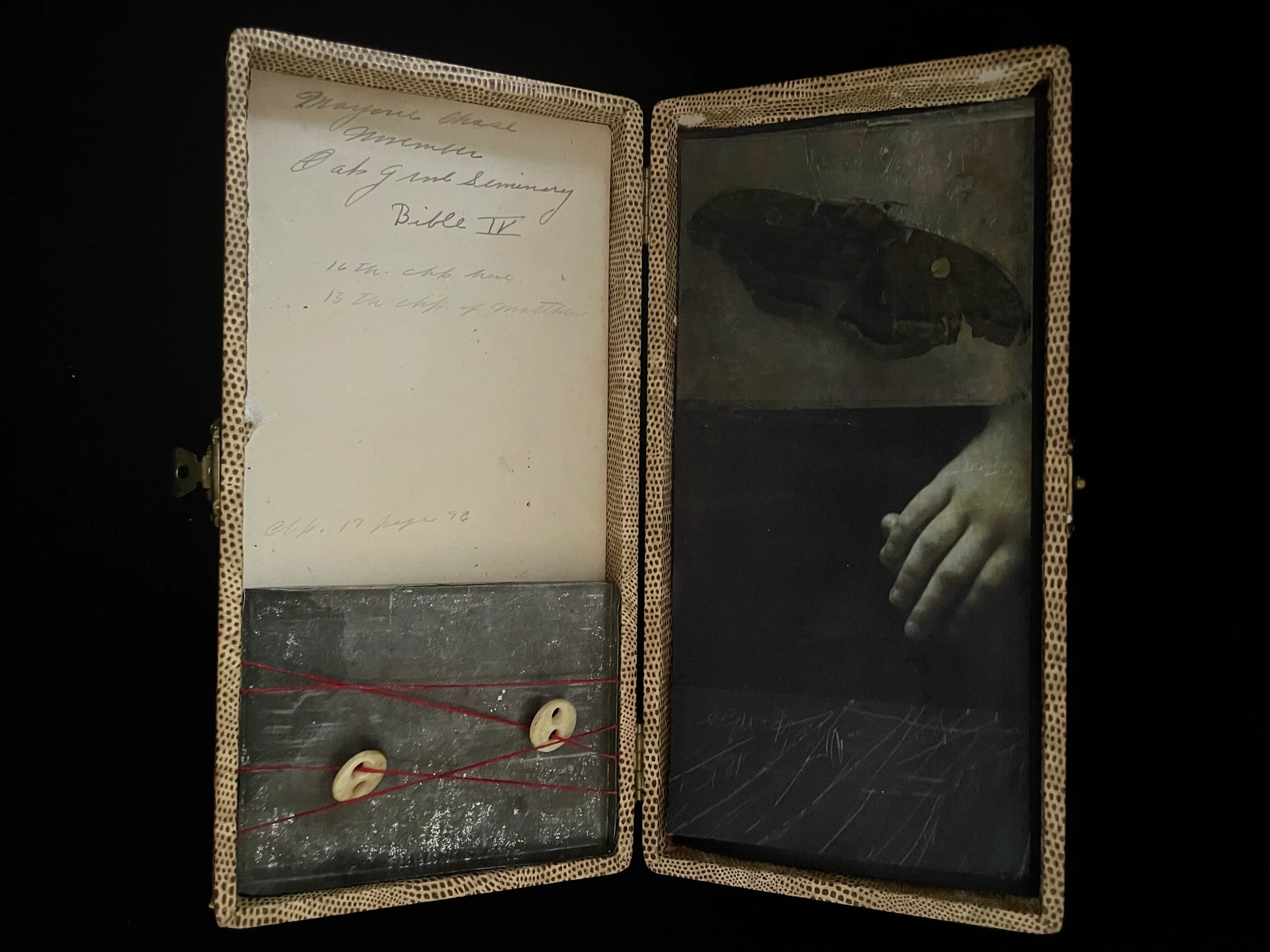 Dawn Surratt contributes two new works that exist purely as objects—one incorporating the delicate mechanism of a watch piece, and another an assemblage constructed from a small box. In both works, photography becomes part of an intimate constellation of materials reflecting on time and memory.
